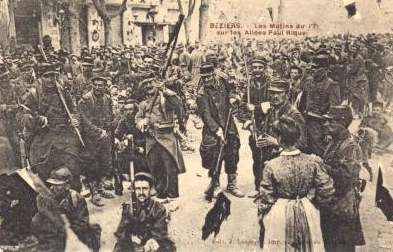 Paroles : Gaston Montéhus (1872-1952). Musique : Raoul Chantegrelet et Pierre Doubis. A Béziers, le 18 juin 1907, les soldats du 17ème Régiment d'infanterie (les pioupious) refusent de tirer sur une manifestation de vignerons et mettent la crosse en l'air. Ils seront déportés au bataillon disciplinaire de Gafsa en Tunisie. |
